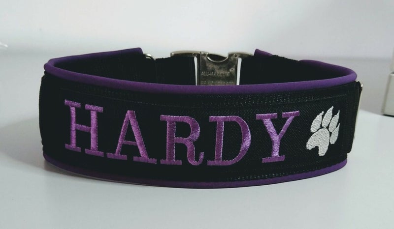Brede halsbanden met handvat en Cobra-gesp van 5 cm breed ,gevoerd met softshell